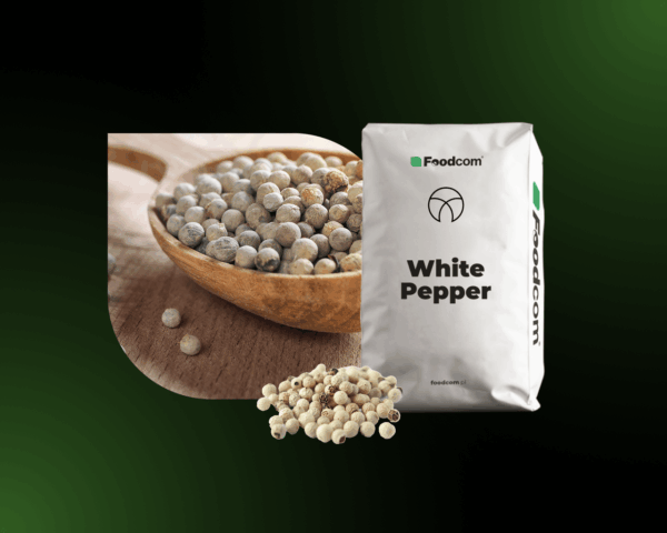 Foodcom S.A. bietet sterilisierten weißen gemahlenen Pfeffer an – ein aromatisches Gewürz mit einer cremigen Farbe. Ein Produkt, das in der Lebensmittelindustrie geschätzt wird, insbesondere bei der Herstellung von Saucen, Suppen, Fertiggerichten und hochwertigen Würzmischungen.