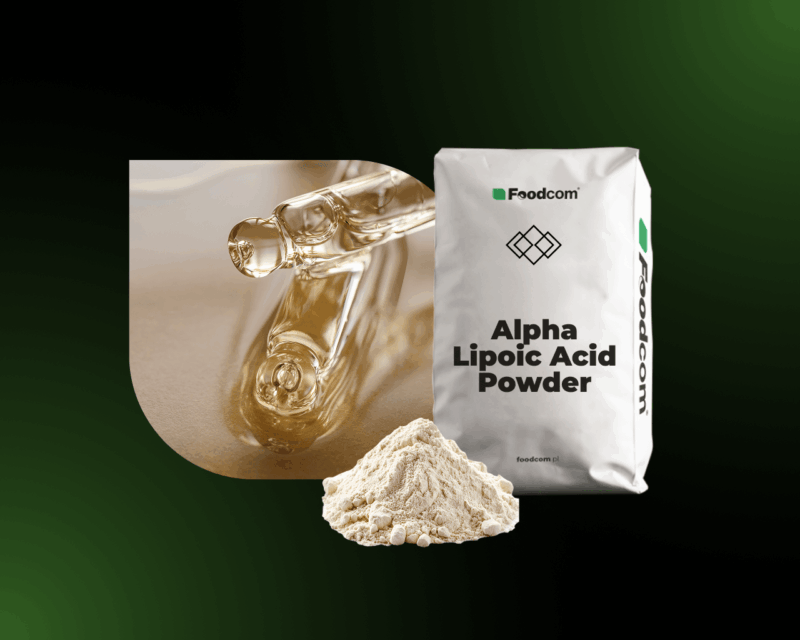 Foodcom S.A. offers Alpha-Lipoic Acid – a high-quality ingredient with strong antioxidant properties. The product, in the form of a light yellow powder, is distinguished by its high purity and stability, which makes it widely used in dietary supplements, pharmaceuticals, functional foods and cosmetics. It is a versatile raw material that supports the development of innovative health-promoting products.