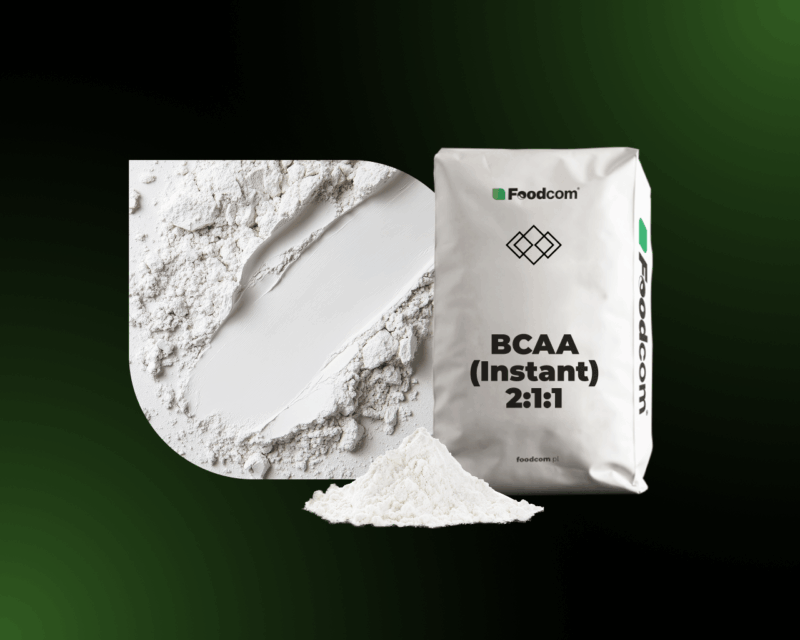 Foodcom S.A. oferuje Instant BCAA – mieszankę aminokwasów rozgałęzionych: leucyny, izoleucyny i waliny w optymalnej proporcji 2:1:1. Produkt w postaci białego do szarobiałego proszku wyróżnia się dobrą rozpuszczalnością i jednorodną konsystencją, dzięki czemu idealnie sprawdza się w suplementach diety, odżywkach sportowych oraz żywności funkcjonalnej.