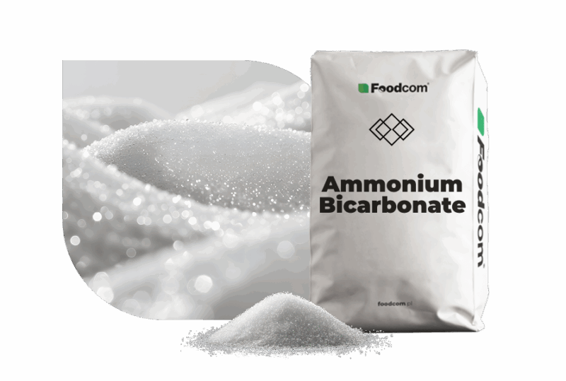 Foodcom S.A. предлагает бикарбонат аммония – высококачественный ингредиент, используемый в качестве регулятора кислотности, разрыхлителя и компонента химических и промышленных процессов.